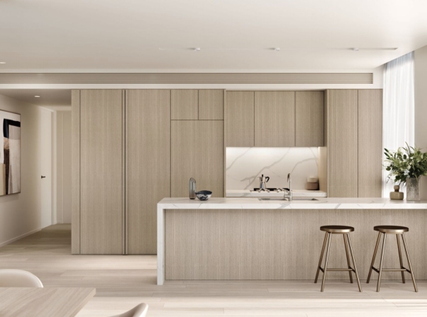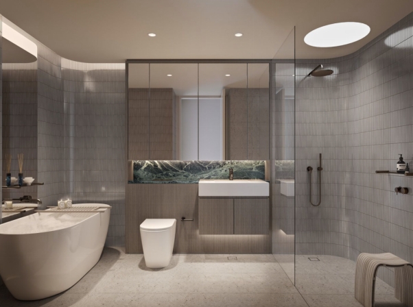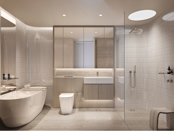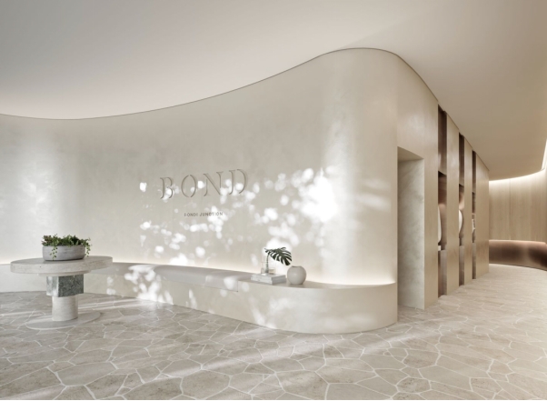 区域内还有Centennial Park、Cooper Park 等公园供您消遣游玩。 '03 自然与城市的完美融合 — Bond, Bondi Junction— Koichi Takada 优雅的大堂让城市的喧嚣瞬间消散。其柔和的曲线设计仿佛一个温柔的臂弯,欢迎您回家。