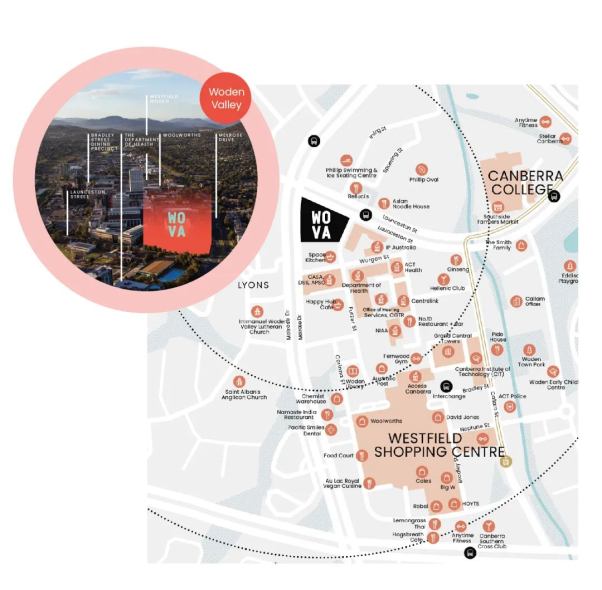 WOVA 项目坐落在 Woden 大区中心,这里距离堪培拉市中心和Top1的澳洲国立大学仅10-15分钟车程,交通极为便利。